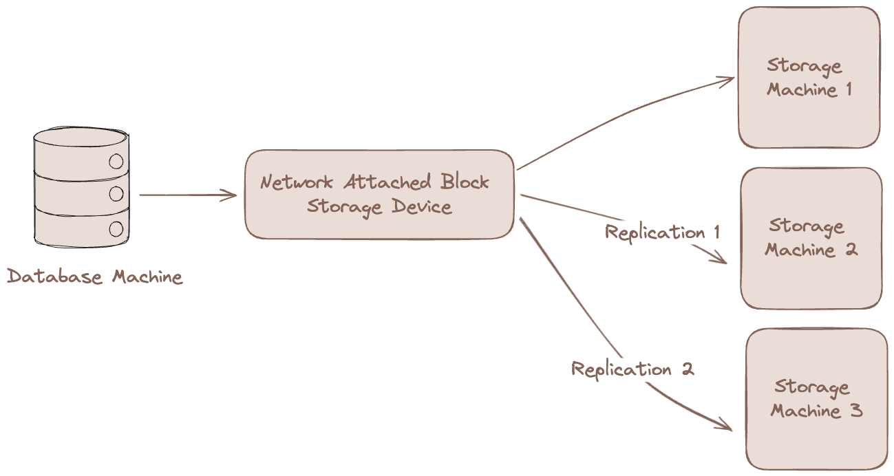 Common in cloud-based architectures, this setup involves storing database files on a different, network attached, device, typically resulting in network calls for any read/write operations.